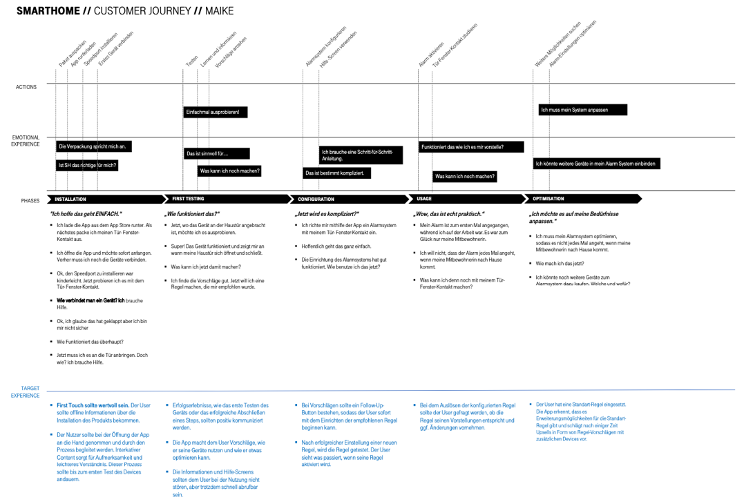 Because we had different user types we created some personae specifically for the Magenta smart home app. We created the technological enthusiast Harald which already had experience with smart home apps and is interested in extremely customizable experiences. And on the other hand, we created Maike, which had a small sense of smart home technology and needed help throughout her configuration time.